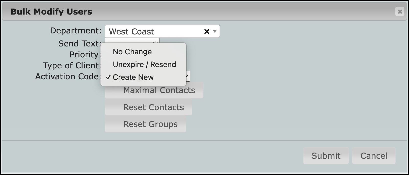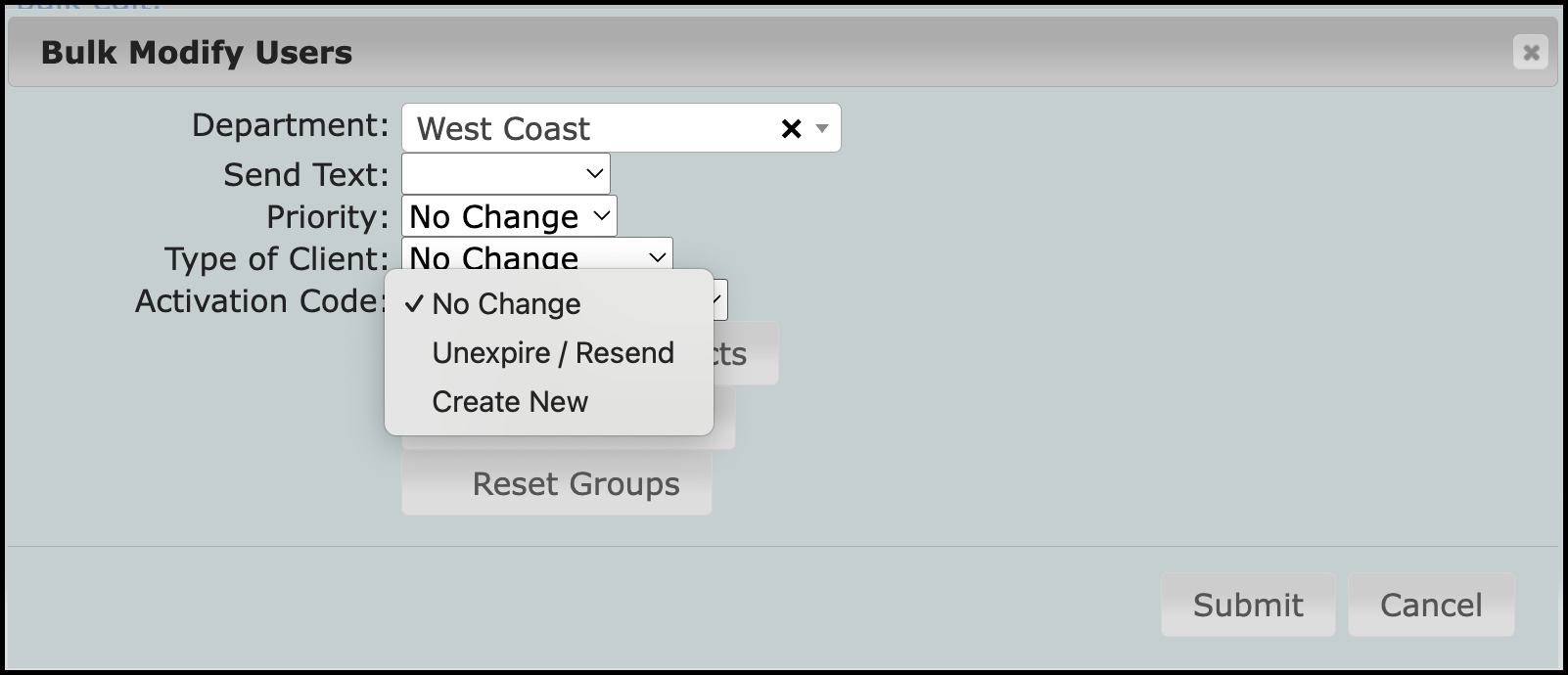 The default option of No Change will not change the code or the expired state. Keep this selected if your users are going to be further delayed in activation. When users expect to activate, open up this window and select one of the two remaining options.