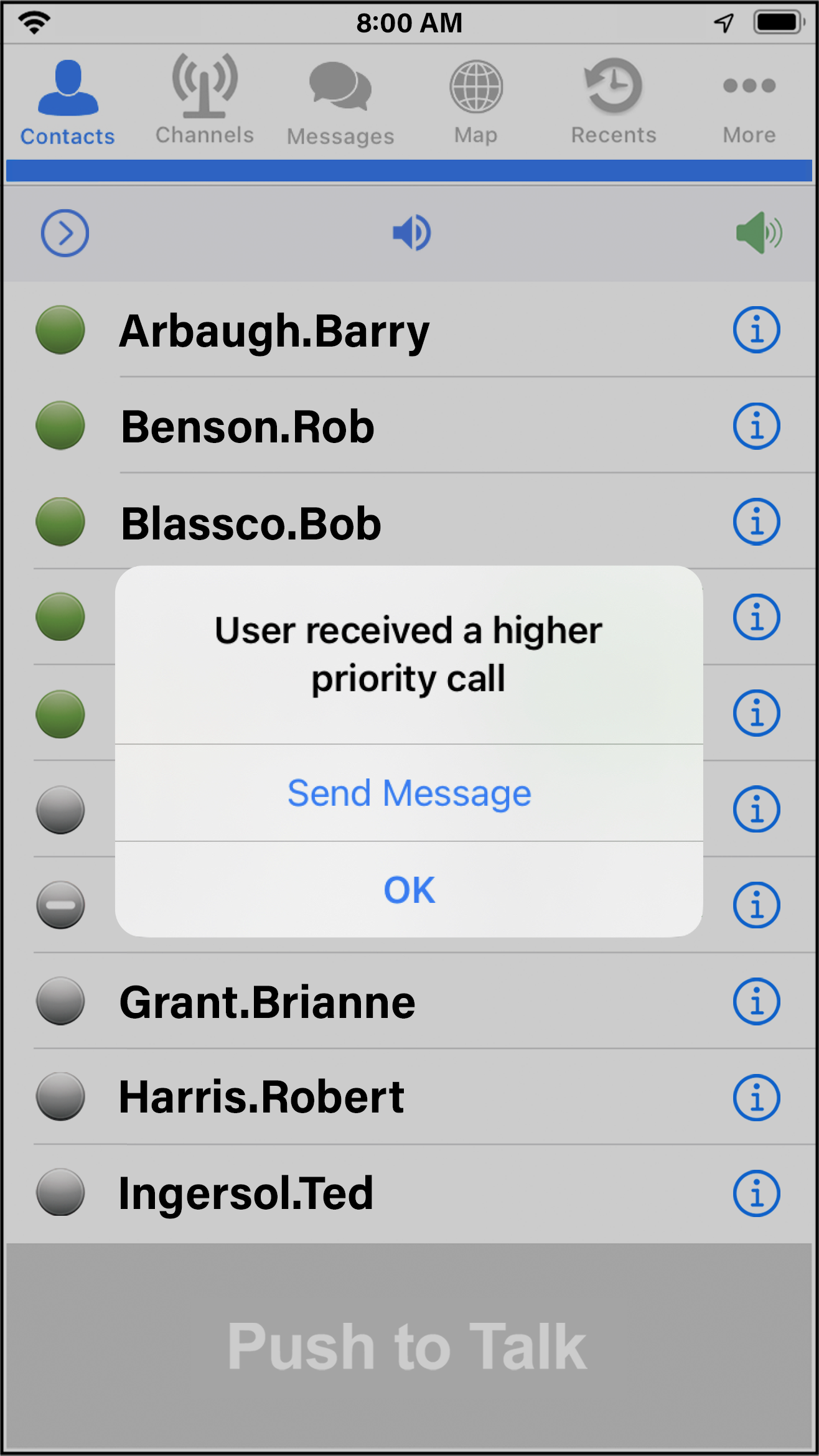 | Within a group call: Members of the group will see a message that a member of the call has been pulled into a higher priority call. |