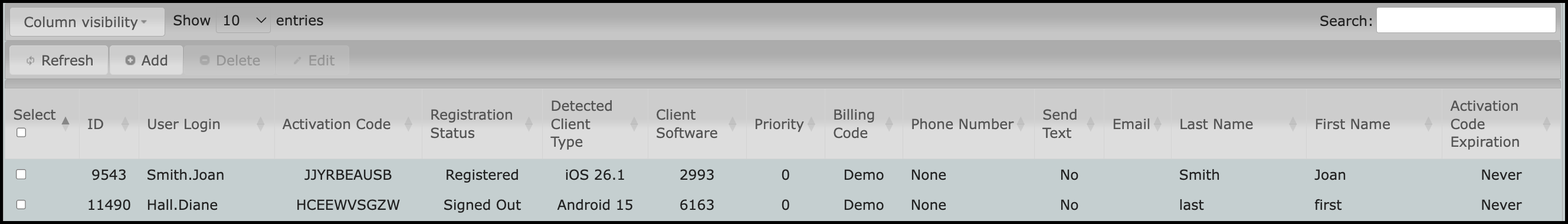 | Activation Code Expiration | This field will either read as "never" or will be a time and date stamp if the user has become unregistered or has had the public key cleared. |