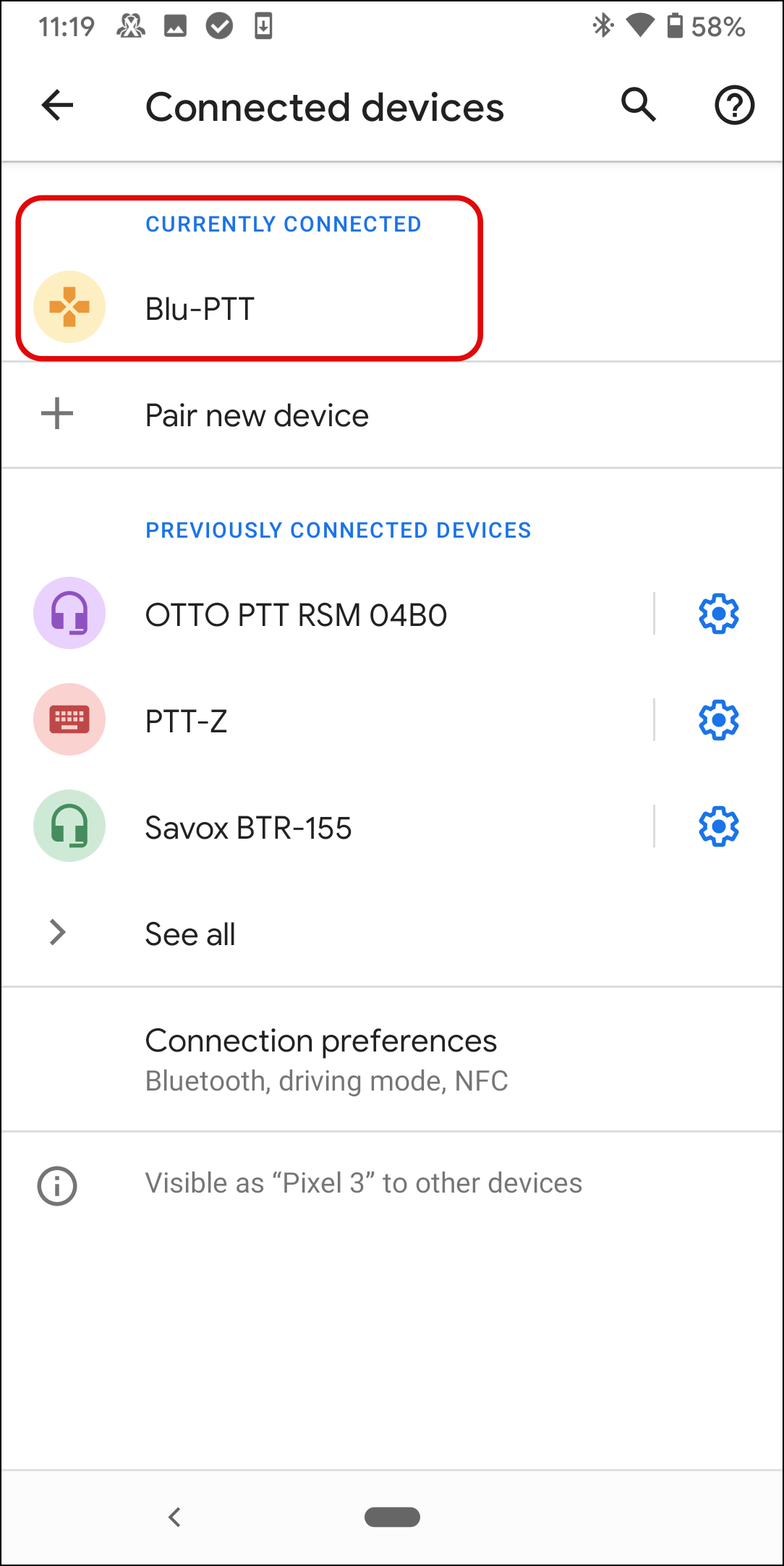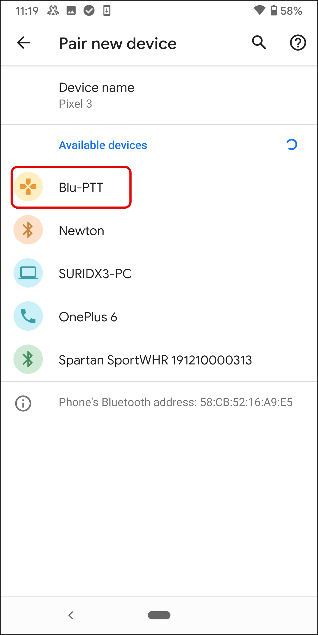 3. If the Blu-PTT is listed under "Paired Devices" (Android) / "My Devices" (iOS), select it to connect with it. If the Blu-PTT is not shown, then the device will need to be paired.
