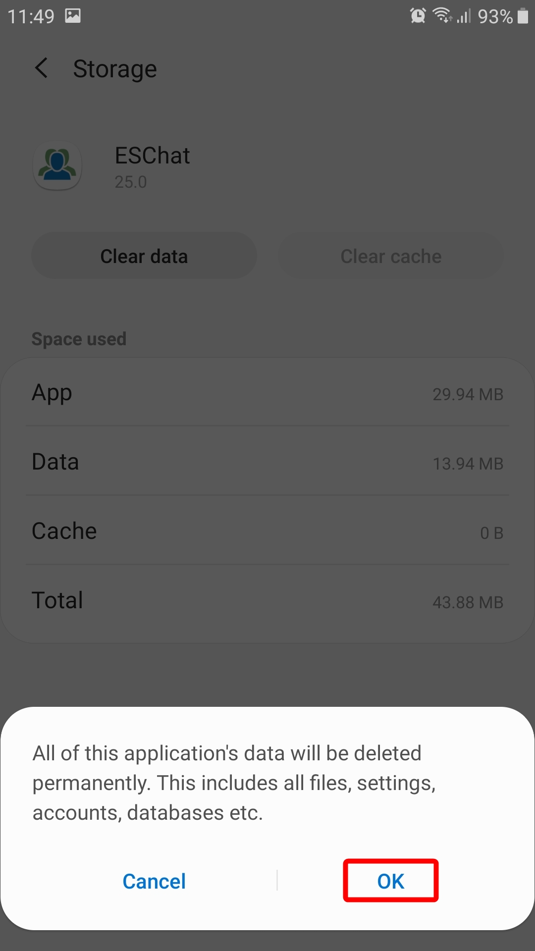 Clear the Application Data or Cache